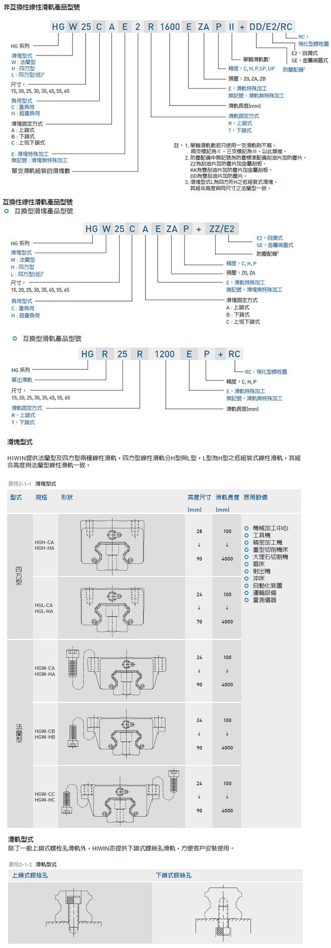 HG系列線性滑軌,為四列式單圓弧牙型接觸線性滑軌,同時整合最佳化結構設計之重負荷精密線性滑軌,相較於其他之線性滑軌提昇了負荷與剛性能力;具備四方向等負載特色、及自動調心的功能,可吸收安裝面的裝配誤差,得到高精度的訴求。高速度、高負荷、高剛性與高精度化概念已成為未來全世界工業產品發展的趨勢,HG系列線性滑軌,即為基於此理念開發之產品。 |