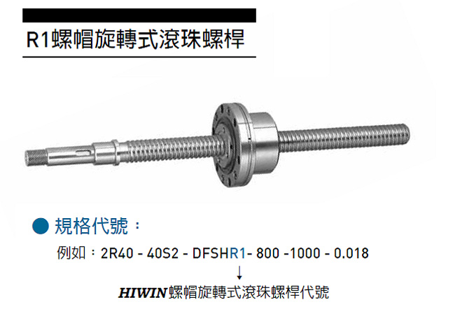 低噪音:R1系列使用端蓋循環,循環鋼珠於螺帽內部迴流,即使高速迴轉噪音也較一般螺桿小。