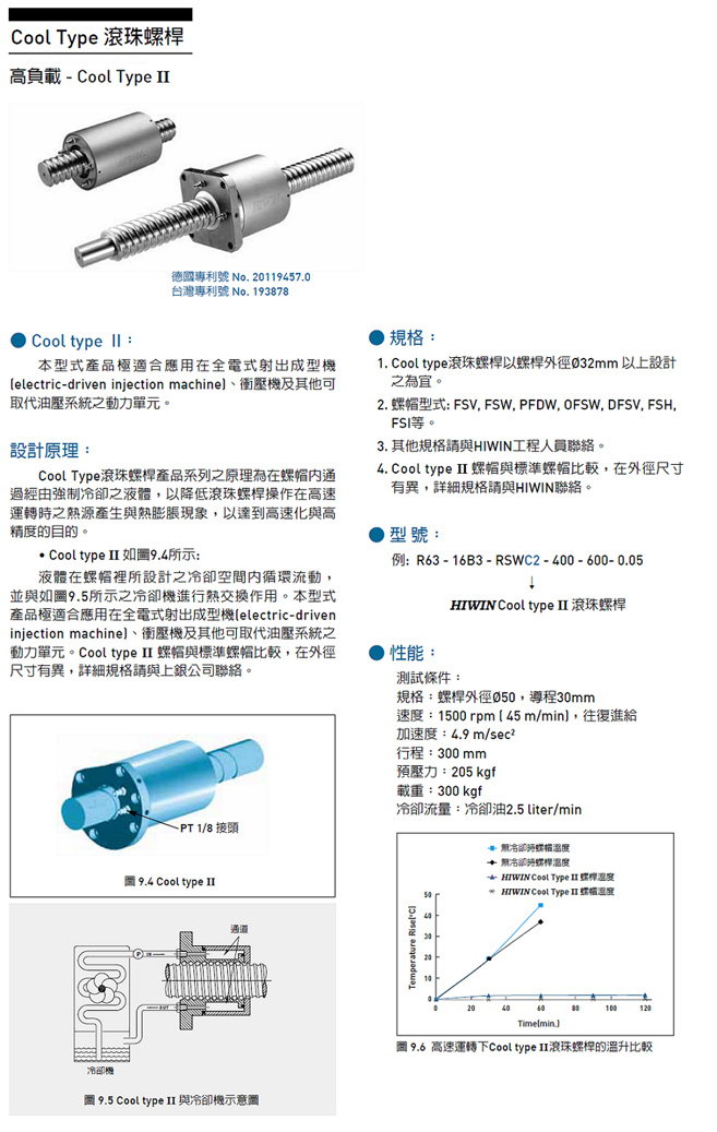 增加耐久性:當滾珠螺桿在往復運轉頻繁之使用環境時,鋼珠間因熱源生成可能會造成氧化(oxidized)或脫碳(decarburized)現象而縮短使用壽命。Cool Type滾珠螺桿由於在穩定的溫控環境下操作,可增加耐久性。